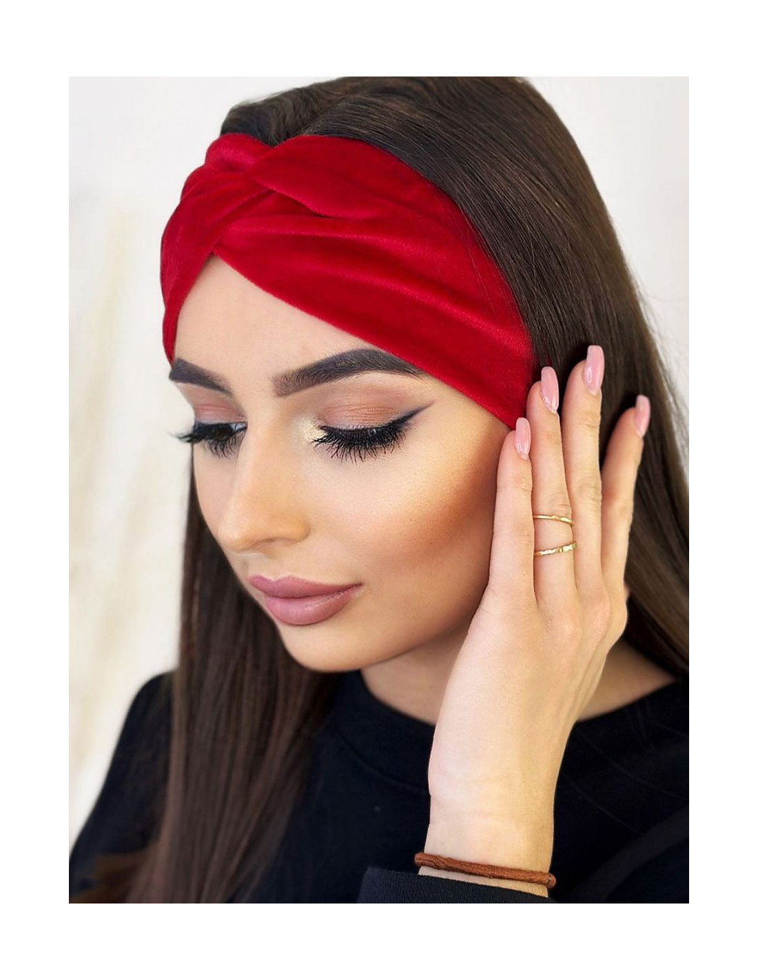 Un bandeau à la mode, complément idéal des tenues d'automne et d'hiver. Fabriqué en velours doux, agréable au toucher et s'adaptant parfaitement au tour de tête. Entrelacs décoratifs avec nœud sur le devant. Conçu et cousu en Pologne.