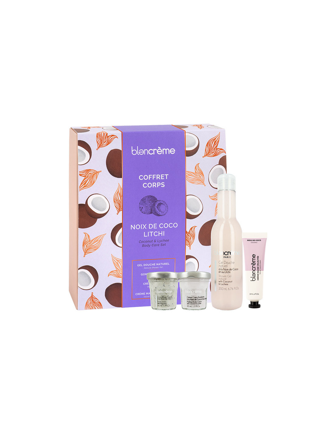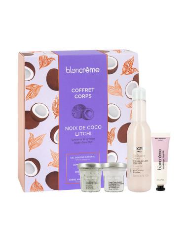 Ce coffret Blancrème au décor gourmand et festif contient une routine exotique complète pour le corps avec 4 essentiels :