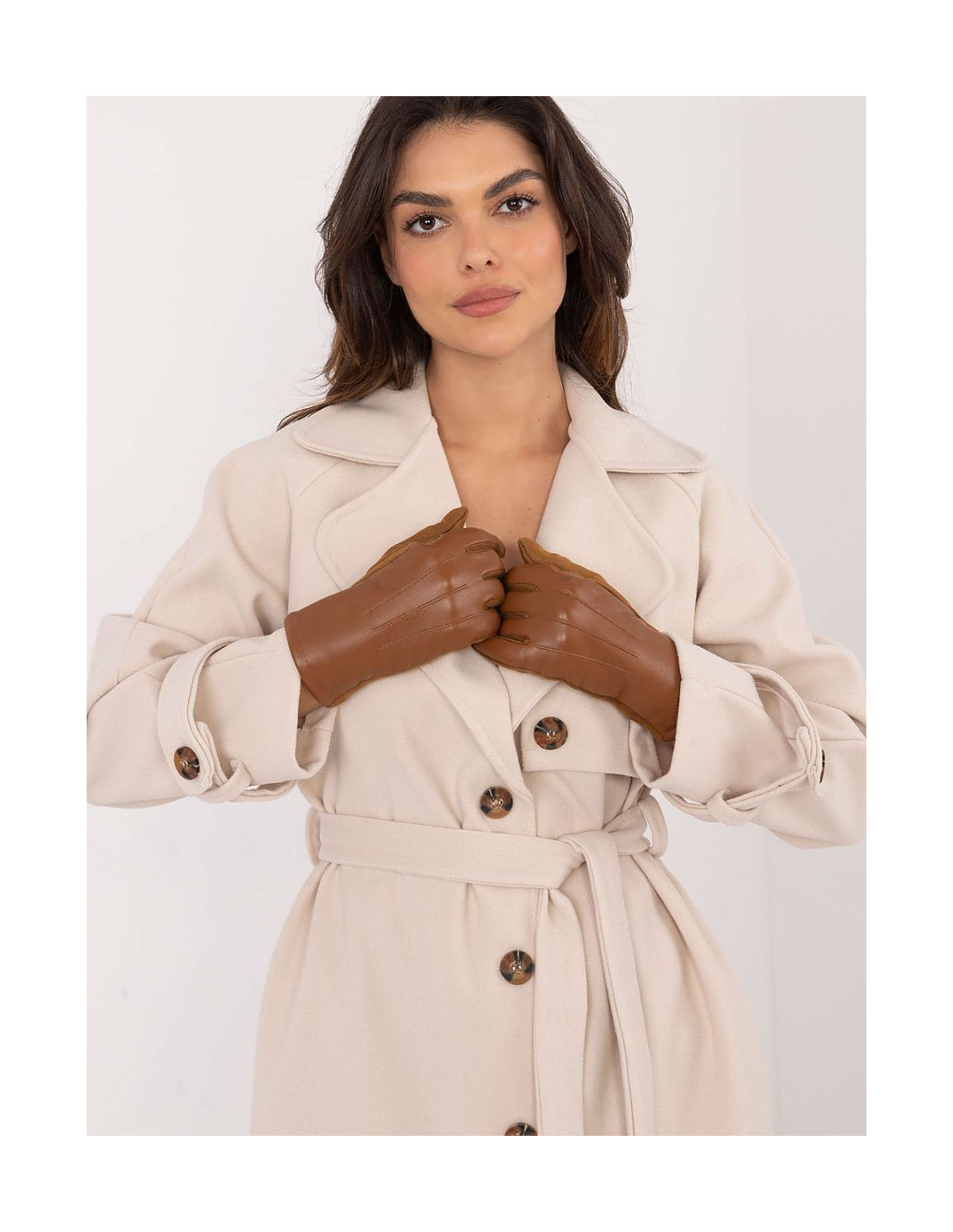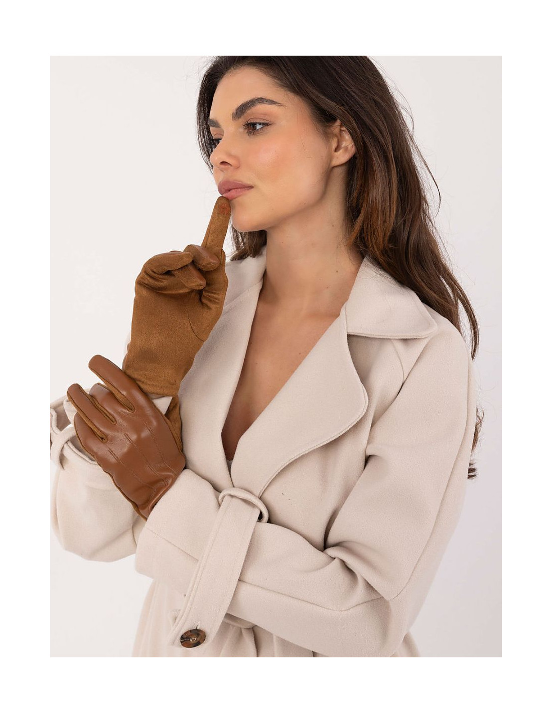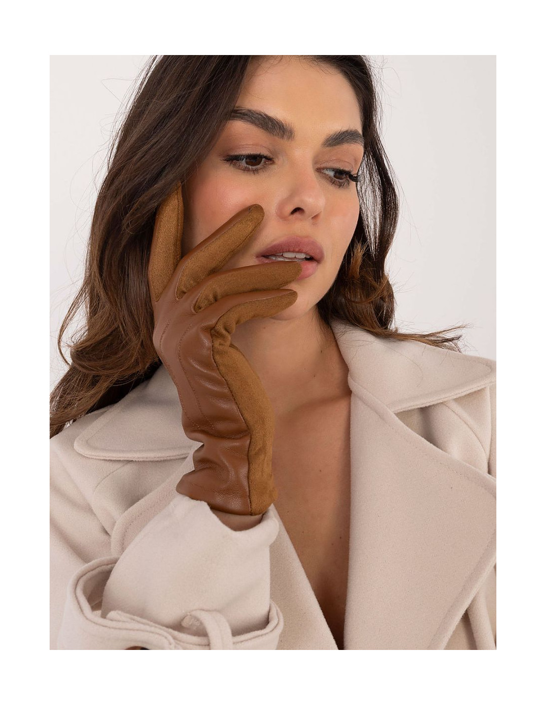 Gants élégants pour femmes en matériau isolant combiné à du cuir écologique. Doigt avec une fleur brodée, permettant d'utiliser le téléphone sans enlever les gants.