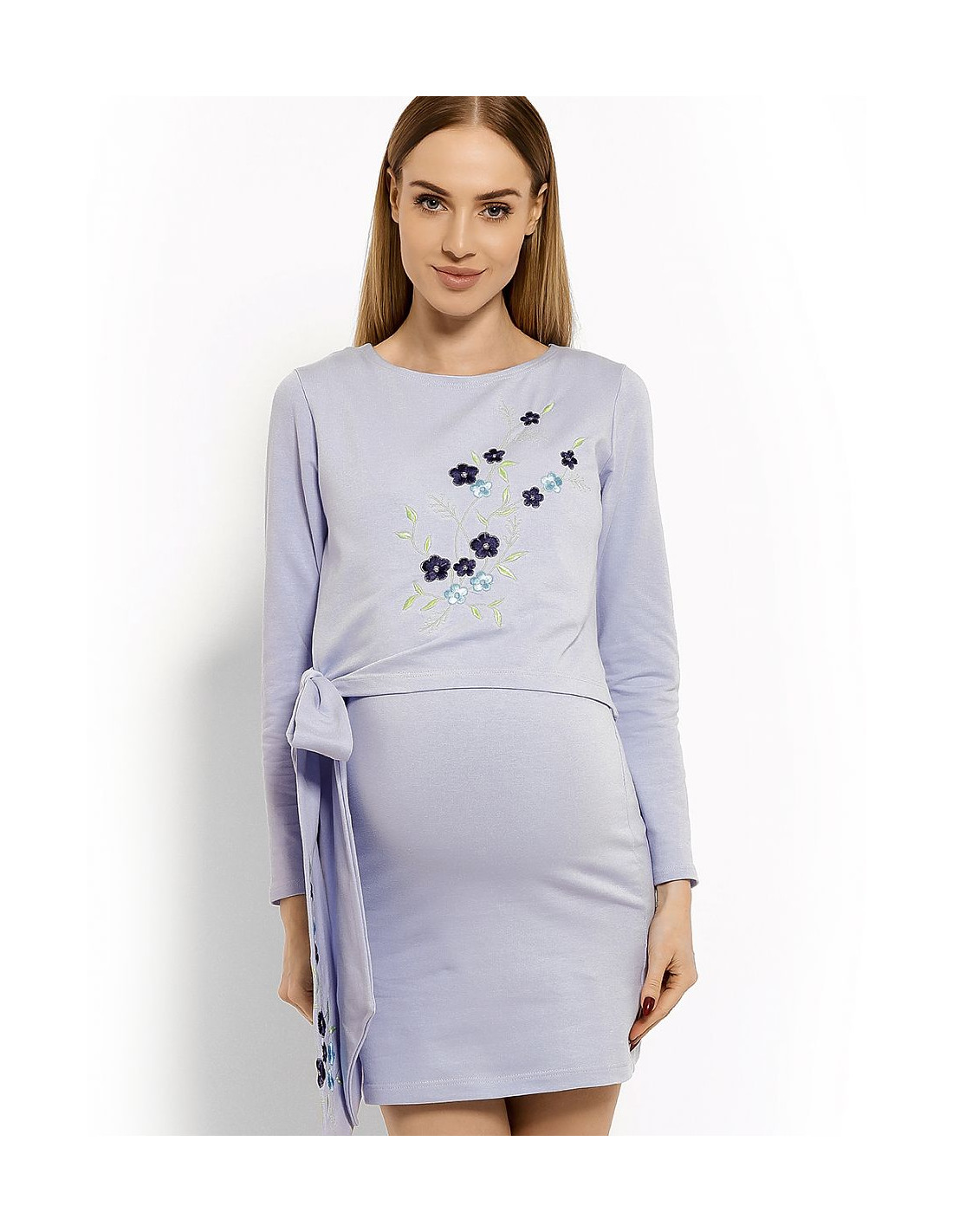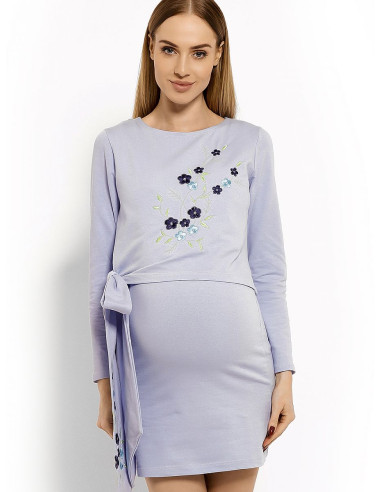 Robe tunique ajustée. Deux couches pour un allaitement discret. Broderie florale. Ceinture nouée sur le côté. Peut également être porté après une grossesse. Coton de haute qualité.