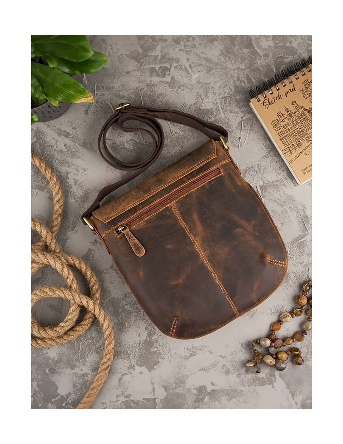 Le sac postal T-61 a été fabriqué en cuir de chasseur naturel vieilli. Avec l'intensité de l'utilisation, il acquiert un caractère individuel de rayures, le cuir se patine. Le sac se ferme à l'aide d'une fermeture magnétique, l'intérieur est extrêmement facile à ranger. Le compartiment principal zippé est doté d'une poche zippée et de deux poches à glissière, dont une pour le téléphone. Une poche arrière zippée est également disponible. La sangle réglable, d'une longueur de 65 à 125 cm, vous permet d'ajuster la hauteur de portage du sac à votre convenance.
