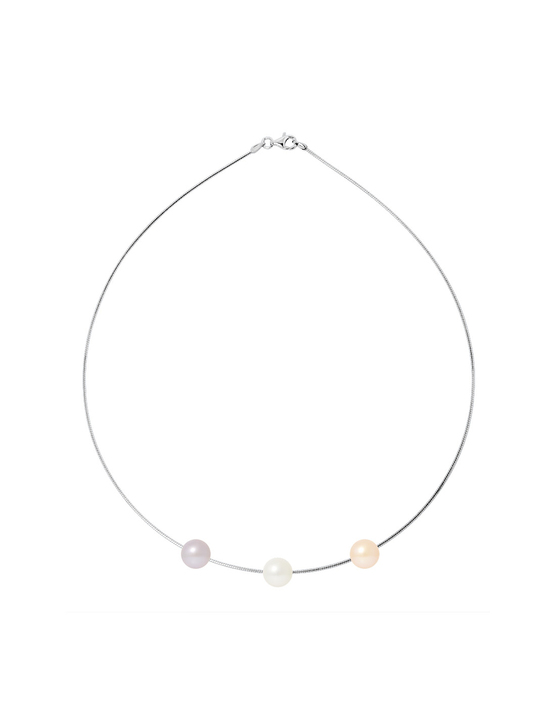 Collier- Argent 925 Millièmes Rhodié- 3 Véritables Perles de Culture d'Eau Douce- Colori Multicolore- Diamètre 9-10 mm- Qualité de la Perle : AAA+- Fermoir Mousqueton- Livré dans un écrin Prestige et accompagné d'un Certificat d'Authenticité et de Garantie- Fabriqué par nos Artisans Bijoutiers Français- Garanti 2 ans contre tout défaut de fabrication Internationale