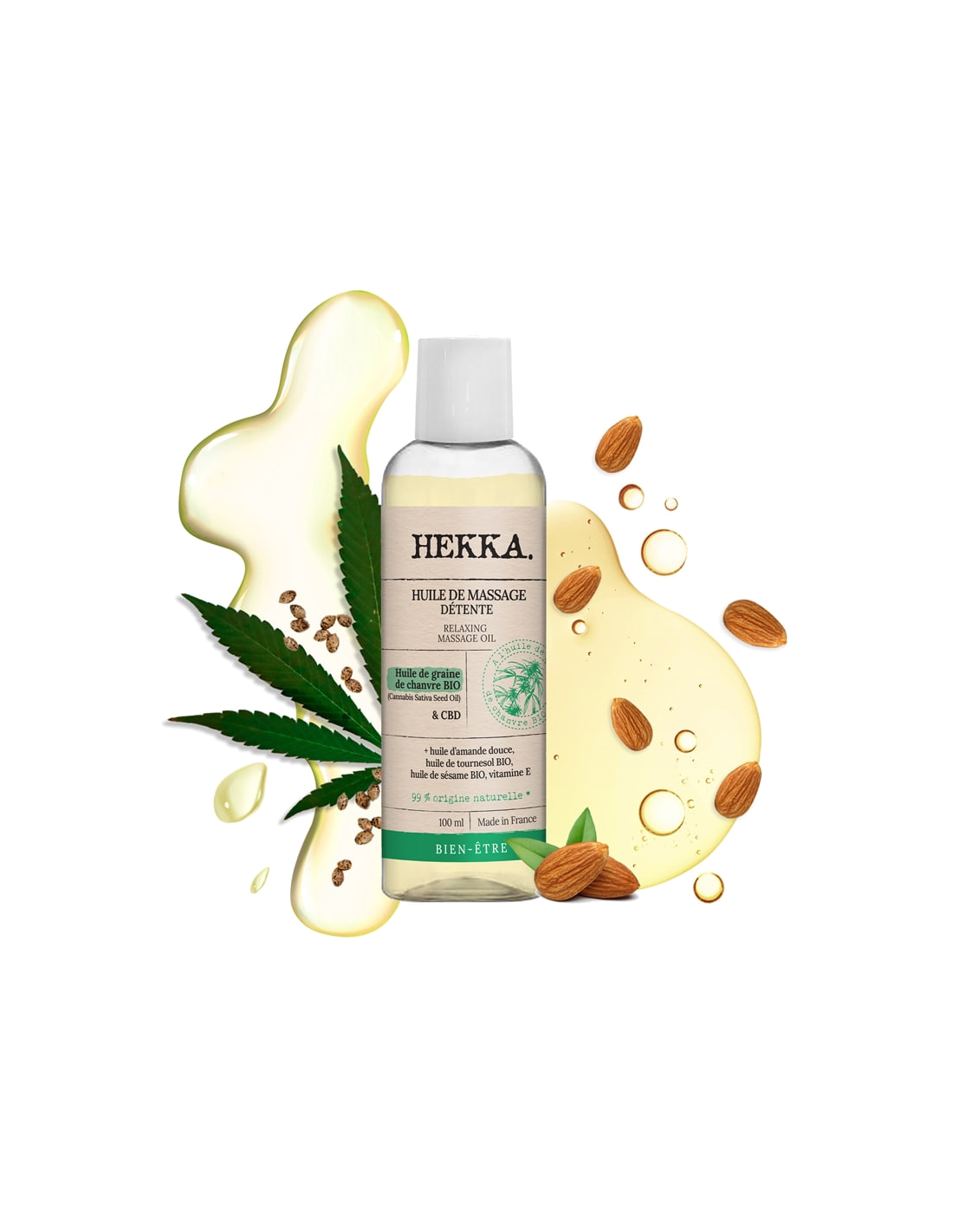 - De l'huile de graines de Chanvre BIO : Extraite en France dans la région de Nîmes, vierge et de première pression : une huile végétale riche en omégas 3 et 6, à l'action nourrissante, raffermissante et antioxydante.