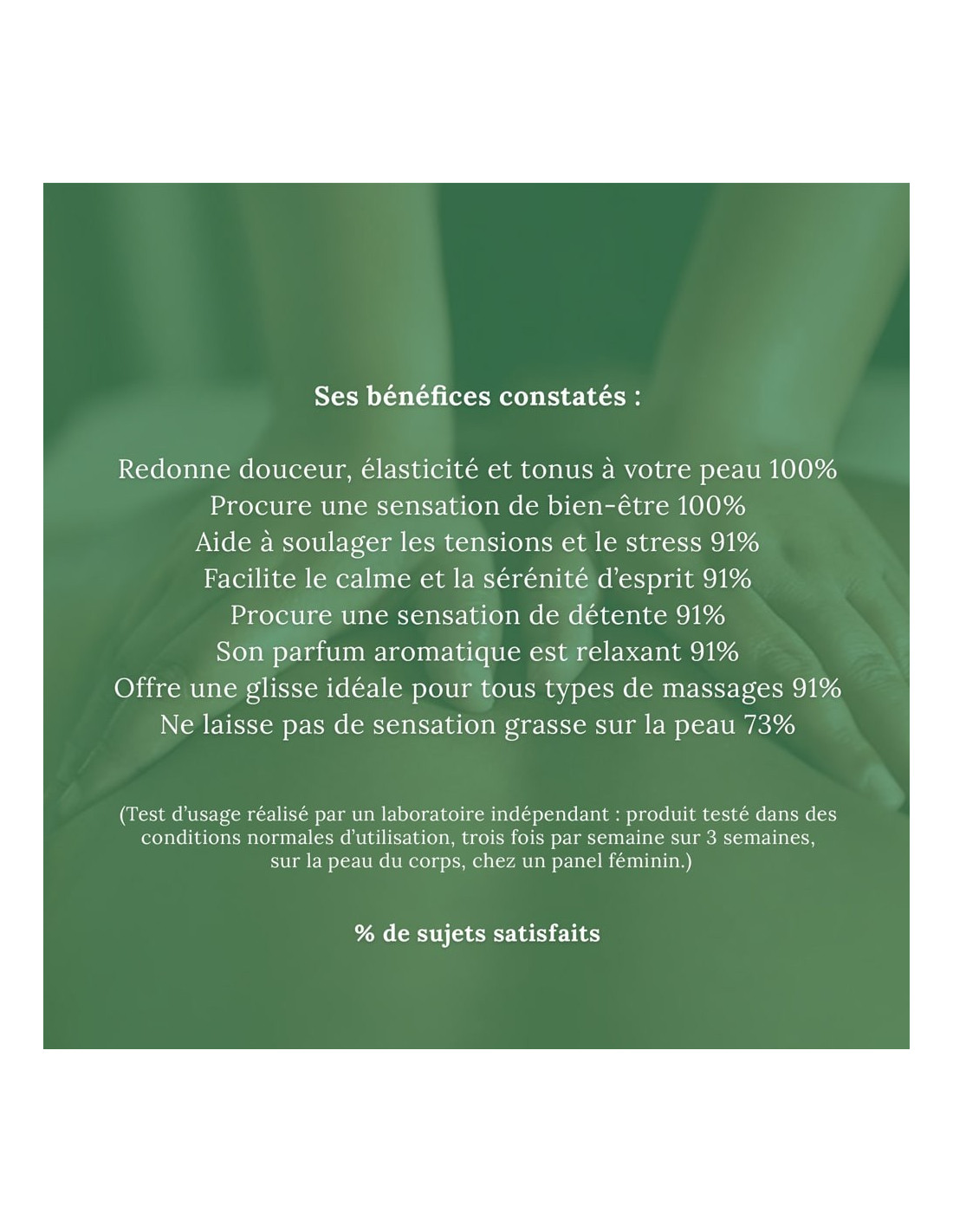 - Offre une glisse idéale pour tous types de massages 91%
