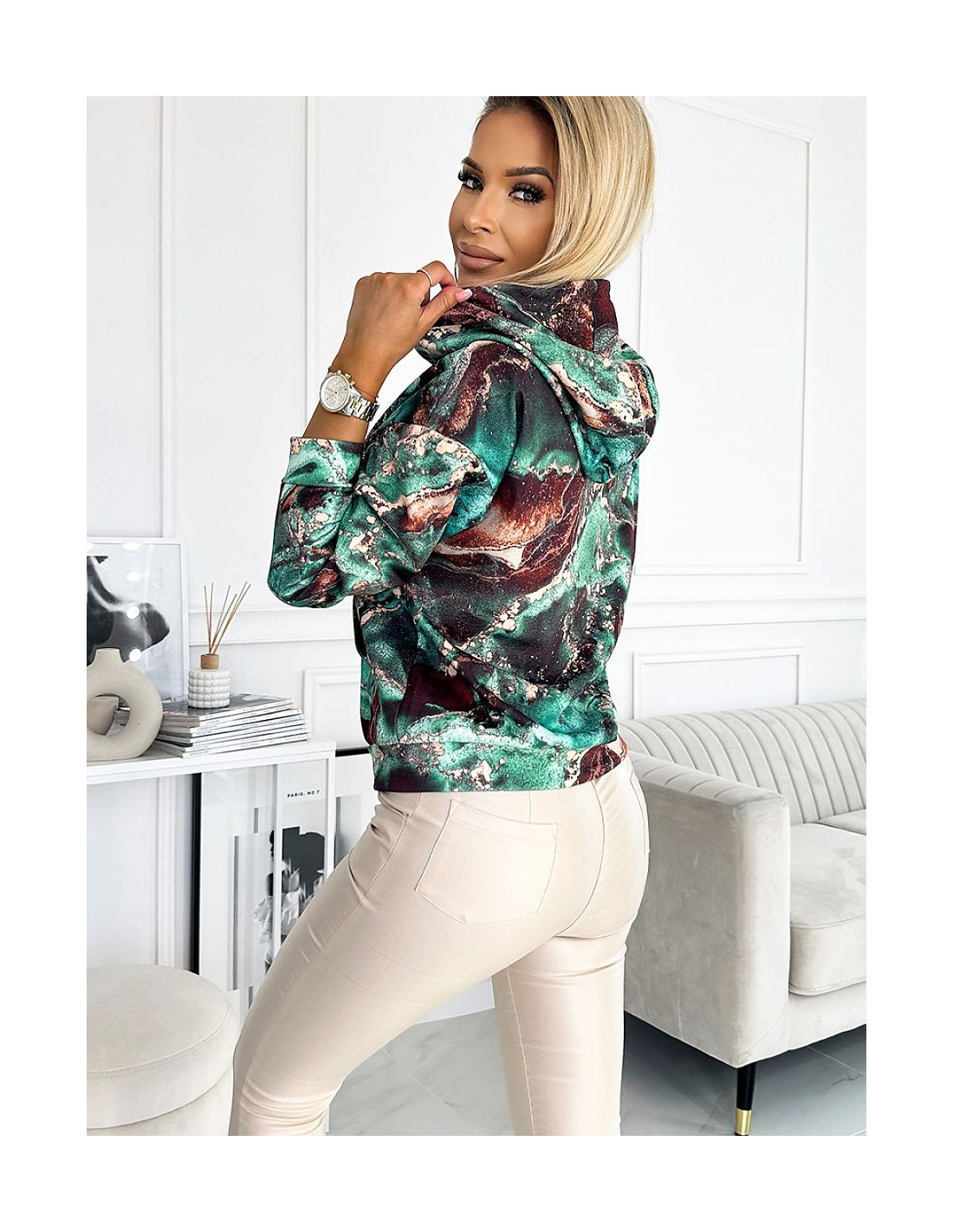 Sweat-shirt kangourou confortable avec capuche. Sweat-shirt de couleur marron turquoise. Fabriqué en tissu chaud et légèrement élastique. Produit polonais. Marque numoco.